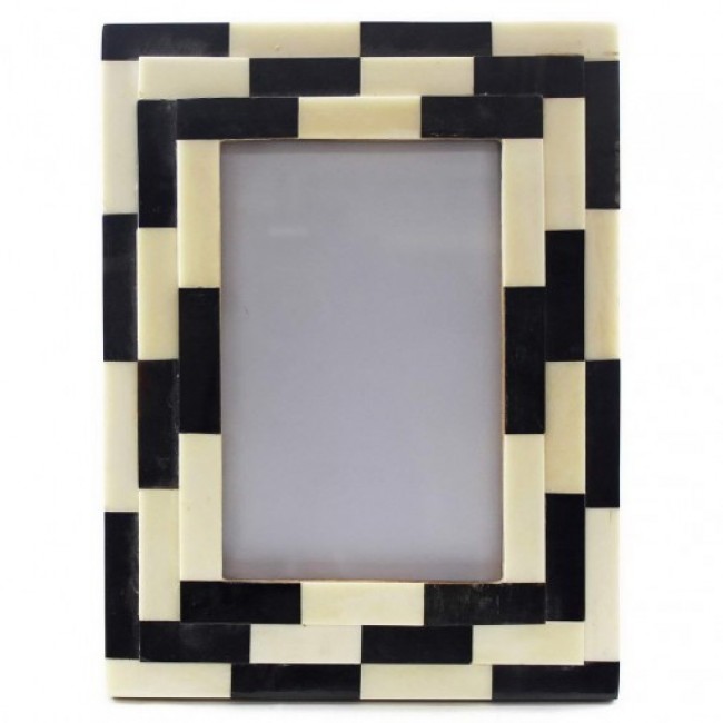 Natural white bone with black resin combination three layer designer bone photo frame