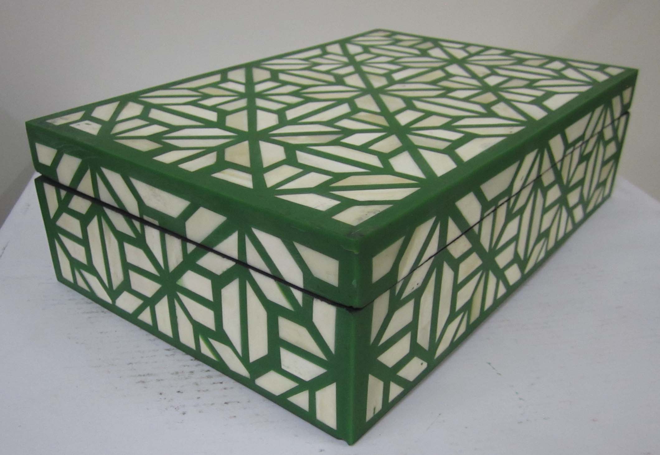 Natural white bone with green color resin combination with geometrical designer bone box .
