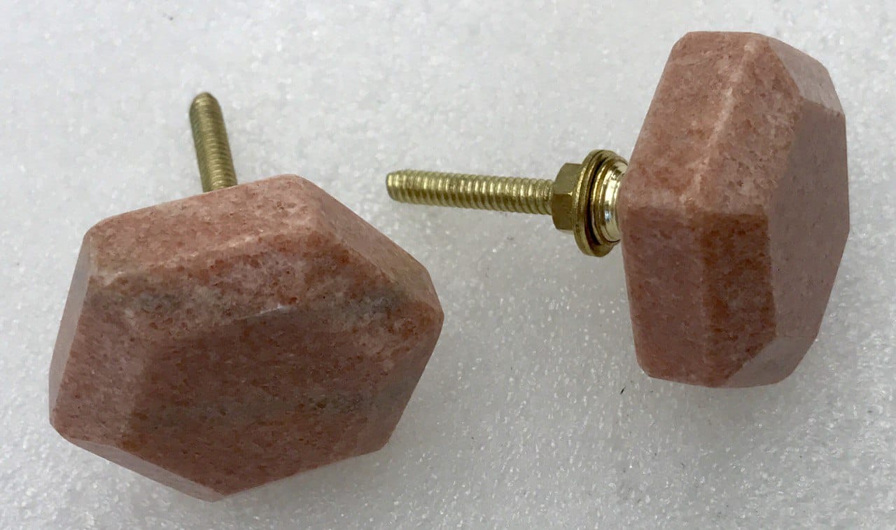 Pink color marble / stone crafted hexagon cutting shape designer  knob , Suitable for every drawers and cabinets.